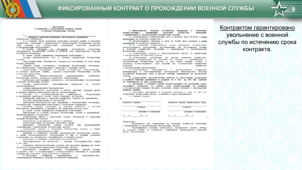Прохождение военной службы только в войсках беспилотных систем (любой другой военнослужащий может быть переведен по решению командования в другую воинскую часть (подразделение) на равную воинскую должность, без согласия военнослужащего, в том числе в штурмовое подразделение).